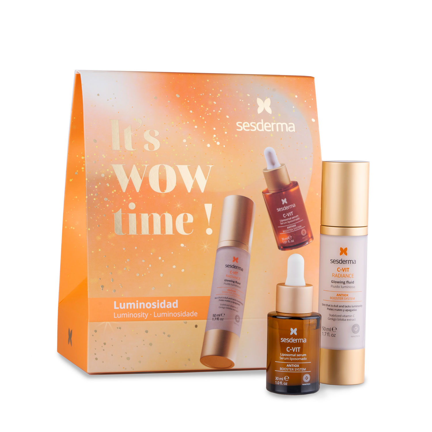 El kit incluye C-VIT Sérum liposomado 30 ml y C-VIT Radiance Fluido luminoso 50 ml.